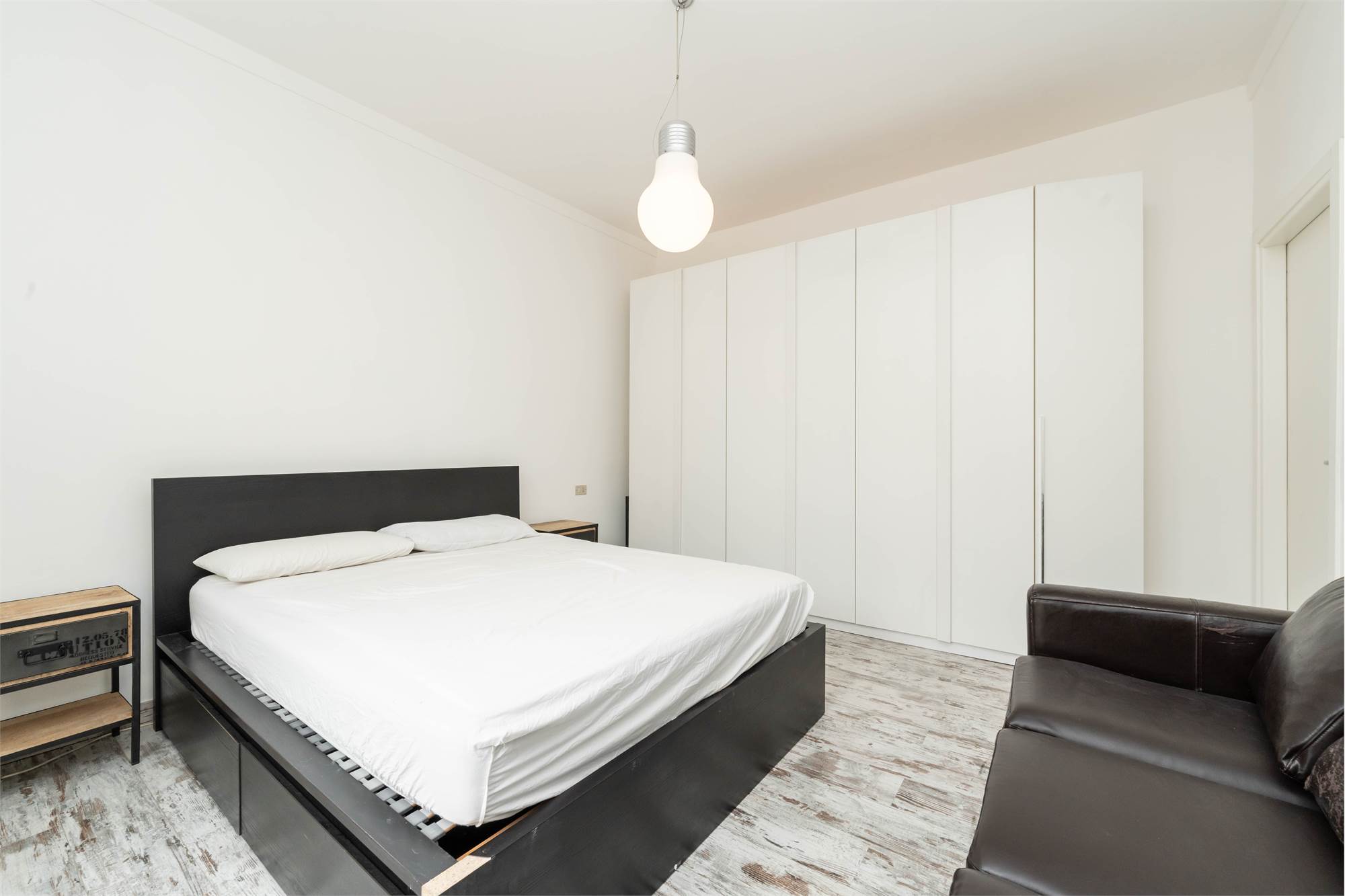 La camera matrimoniale, esposta sul cortile interno, garantisce silenzio e privacy, una qualità sempre più apprezzata nel centro della città.