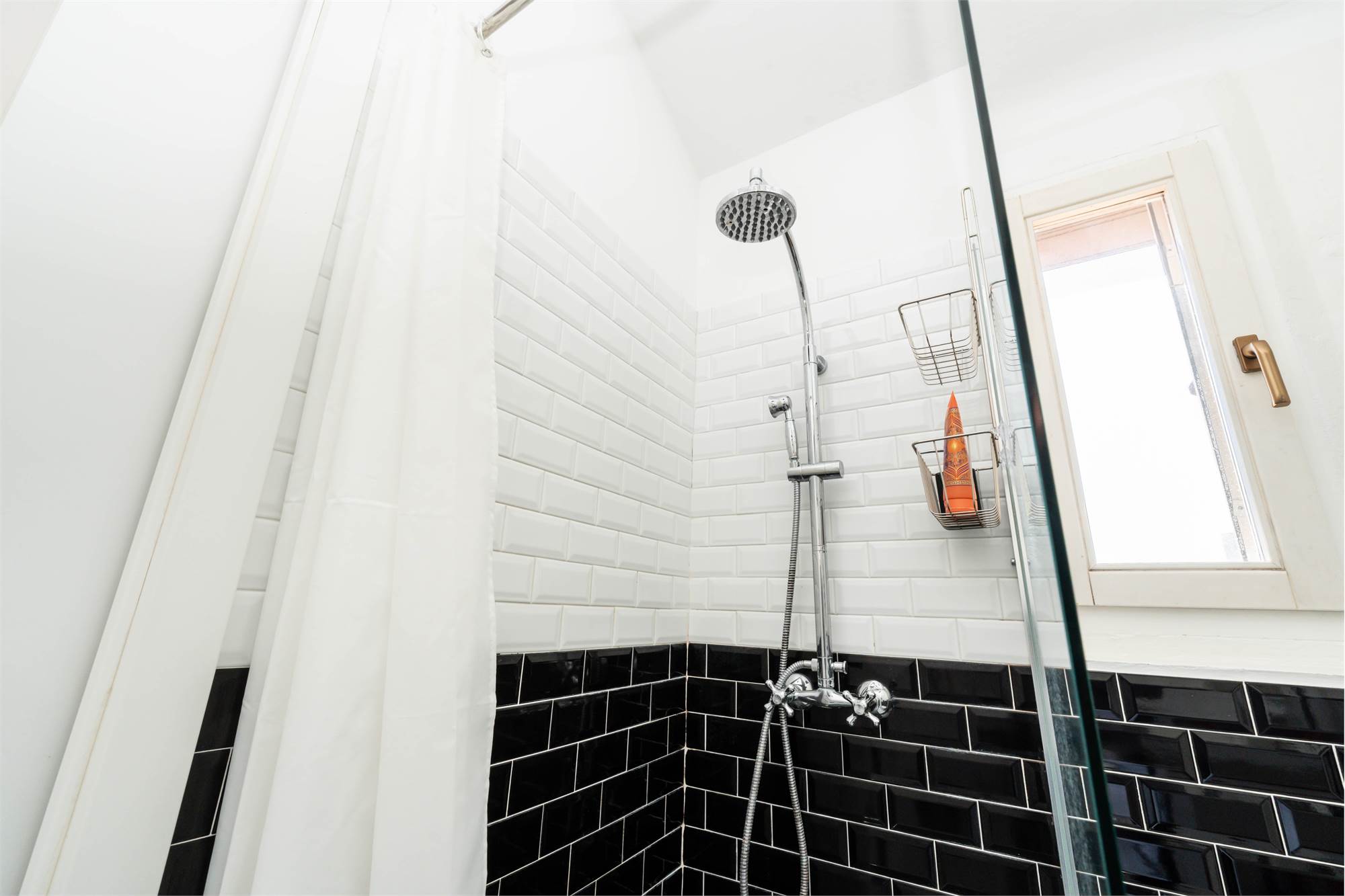 Dall'ingresso si accede alla zona giorno, che ha un salottino confortevole ed una cucina a vista completa di tutti gli elettrodomestici necessari ad una vita comoda (piastra a induzione, frigorifero con comparto congelatore, microonde, lavastoviglie), il bagno è accessibile da sue ingressi diversi.