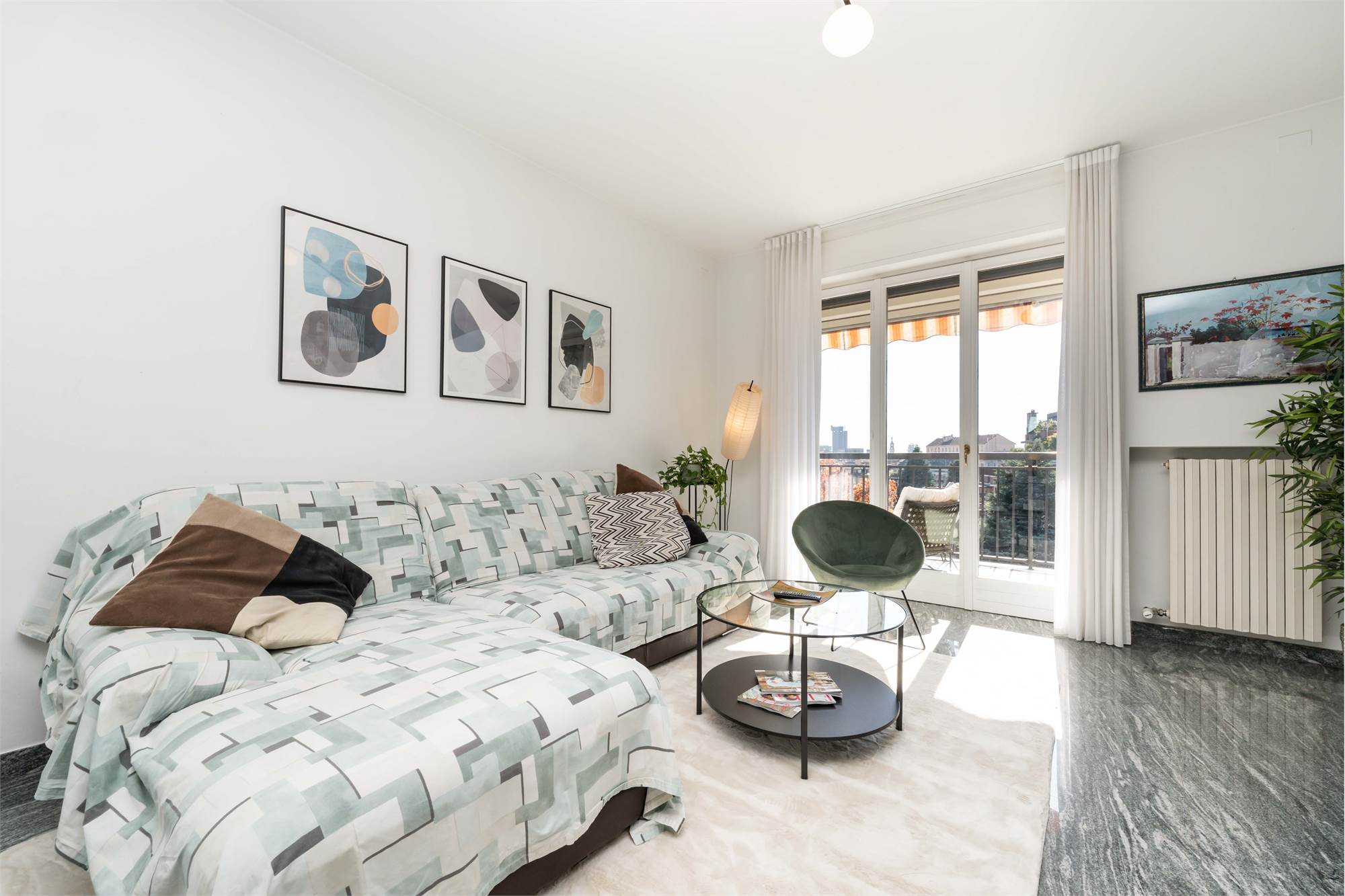 Trilocale ristrutturato con vista aperta e due terrazzi a loggia in stabile signorile.