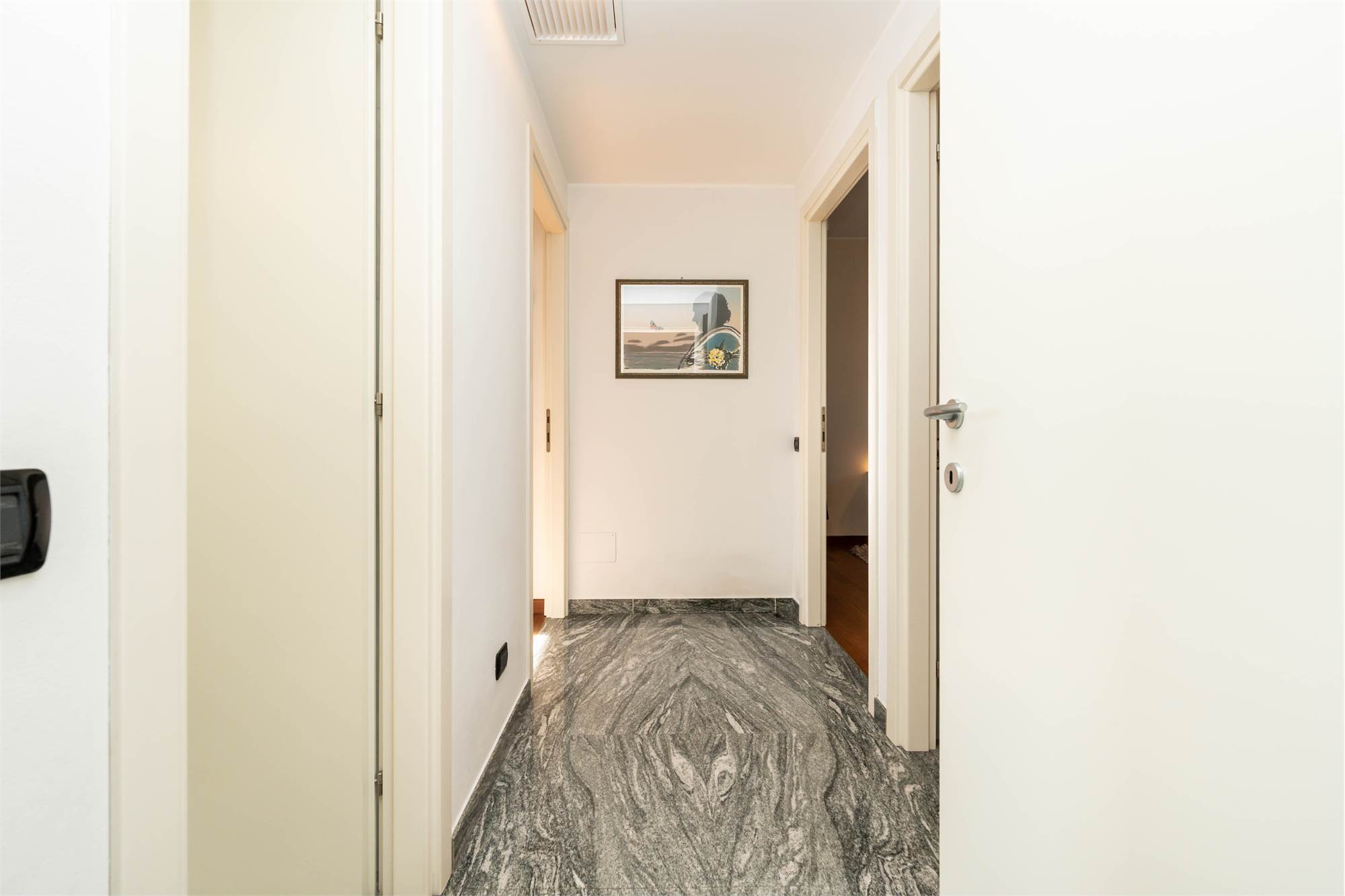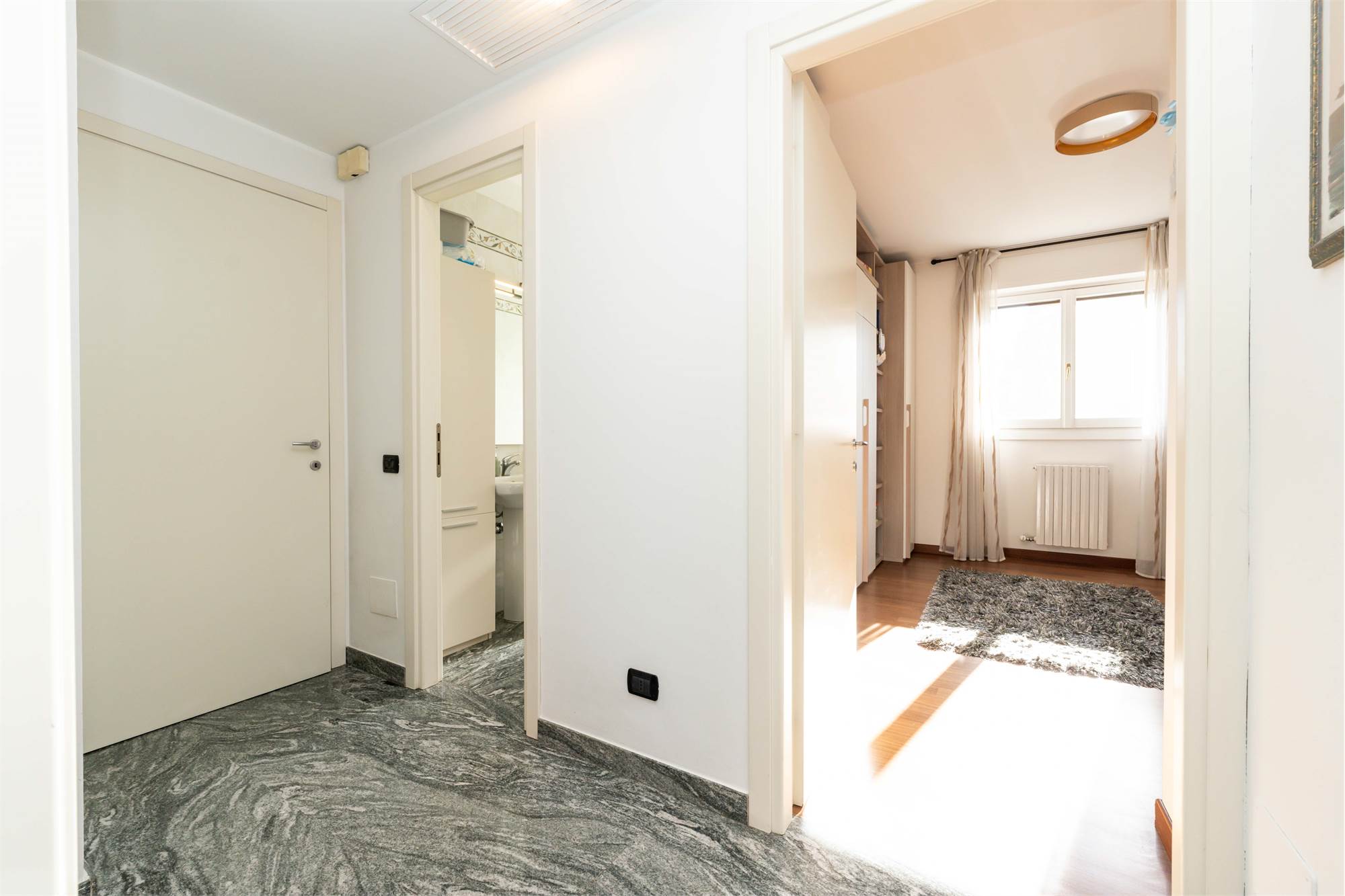 La pavimentazione in marmo impreziosisce i locali principali, mentre il parquet dona calore alle camere.