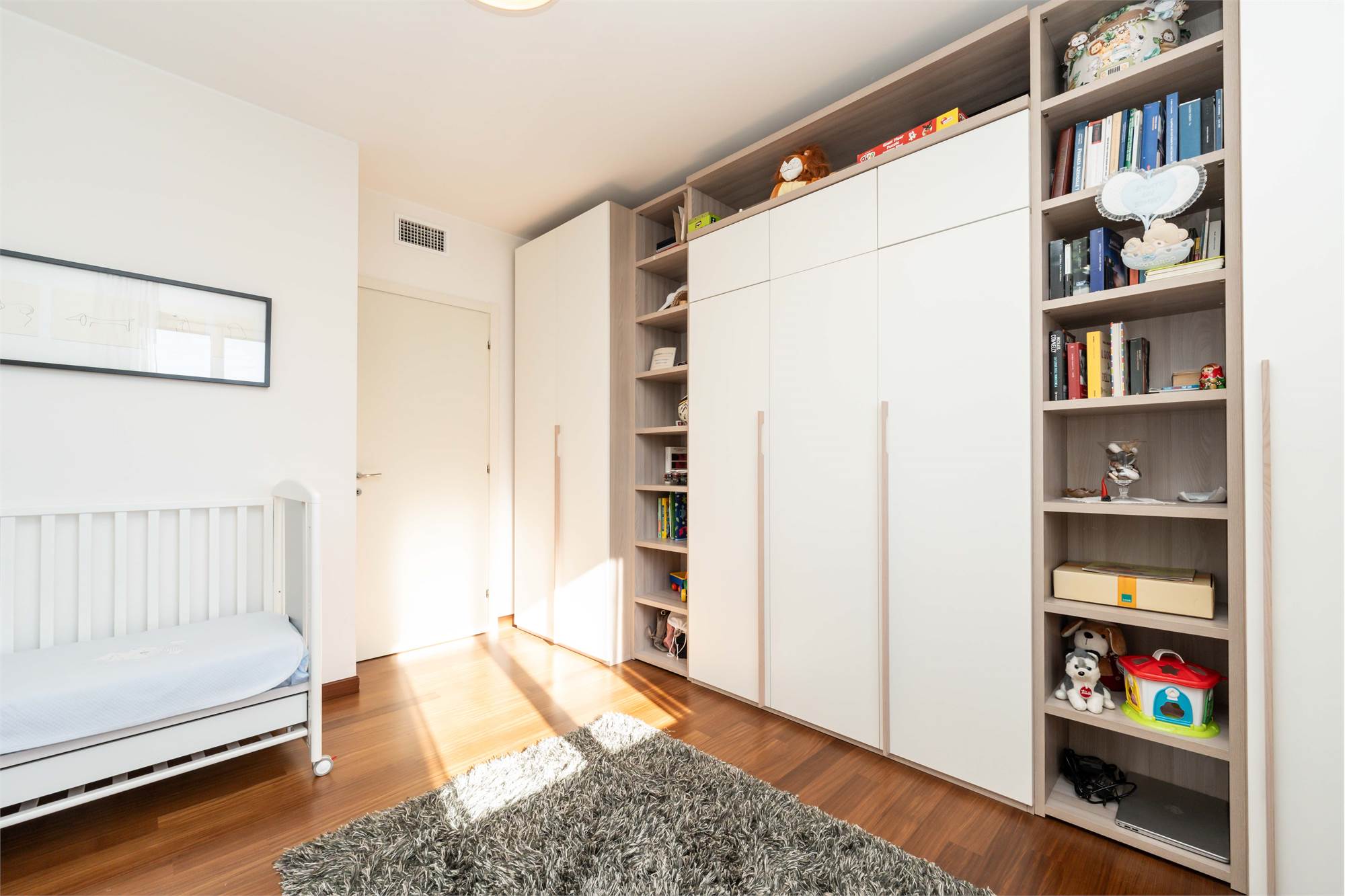 L’abitazione, grazie alla metratura e alla distribuzione interna, si presta anche alla creazione di un’ulteriore stanza, trasformandosi facilmente in un quadrilocale.